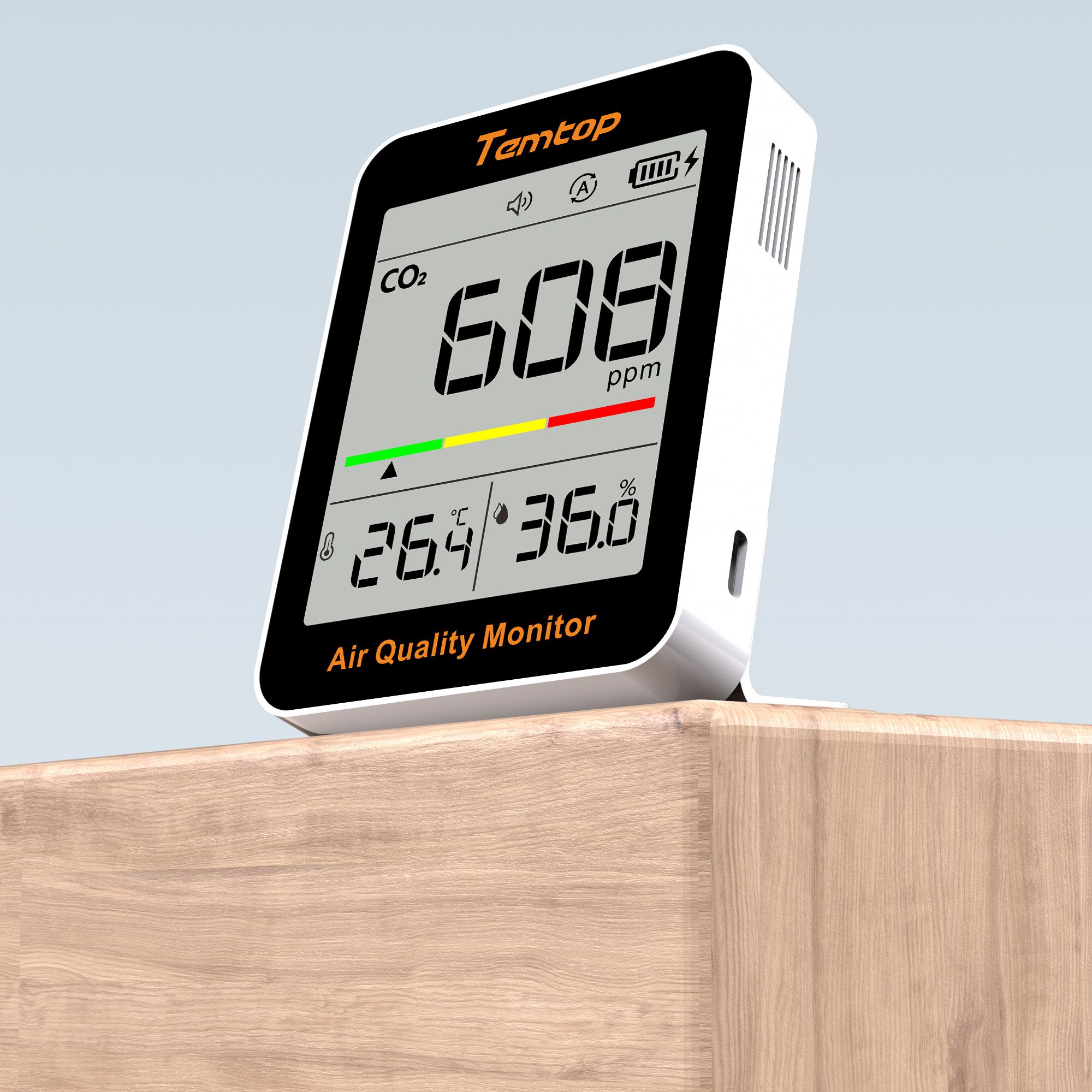 Temtop M2000 第二環(huán)境空氣質(zhì)量監(jiān)測儀是一款高度準(zhǔn)確和可靠的儀器,可測量和記錄各種空氣質(zhì)量參數(shù),包括 CO2、PM2.5、PM10、溫度、濕度、HCHO 和顆粒物。