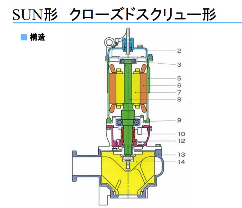 固體廢物潛水泵 | SUN型閉口螺桿式(異物通過(guò)直徑100%) | |