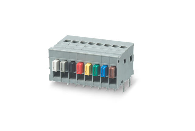 無螺絲接線端子 間距 2.54mm 小型緊湊型直角止回孔按鈕環(huán)絞合單線PCB板安裝分立式尼龍UL CSA TUV 94V-0