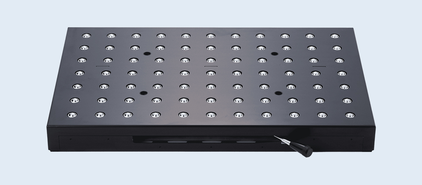 設(shè)置時,通過對設(shè)備臺面進行方槽加工,就可進行夾具、模具、工件的輸送和定位。